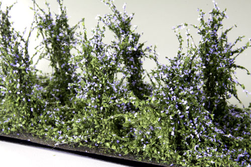 Sixth: The paper base, as you may have noticed, is a soft and porous material that easily conforms to any contour. Use simple white glue to adhere to your scenic base. We recommend that bushes and shrubs be placed first on your scene, and then blend the supporting materials like grassy tufts, static grasses and foliages into the area. |