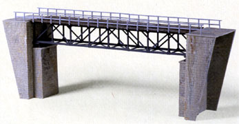 HO-SCALE BOX TRUSS BRIDGE KIT - Easy to build plastic bridge kit! No details have been left off! This highly accurate reproduction includes intricate iron work with rivet detail and truss plates, simulated wood plank decking, iron railings, stone abutments AND expansion shoes! 13" Span x 4-1/4" Abutment height.