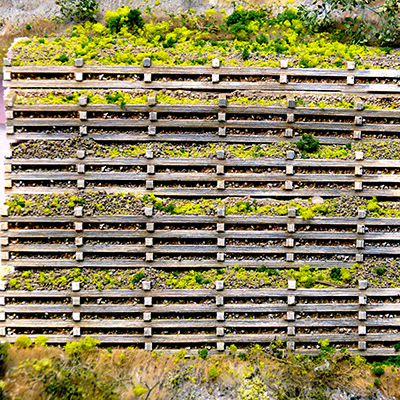 HO/O-SCALE 'FLEXIBLE' MEDIUM TIMBER CRIBBING. Easy to cut. 'Peel 'n' Stick'. Medium timber structure. 3.75" high x 12" wide. Cast resin.