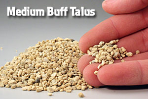 BUFF TALUS - MEDIUM - Excellent for below steep embankments, rock slide areas and stream and river beds. Mix grades and colors for realism. Create rock piles and model blasting areas. Lightweight PearLite for multiscale use. Adheres with Matte Medium. Photos shown in catalog are actual size. 25 cu. in. (Approx. 2 cups) of lighweight rock debris. 4 color tones available.