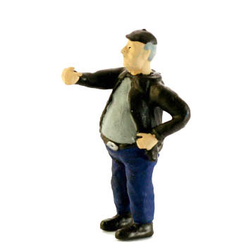 Barney, the "Pot belly" YARDMASTER is in charge of Switching and Yard Operations. His daily tasks include coordinating Freight Trains in the yards so freight cars are placed in trains going toward their destinations. O Scale Figures by MTS LLC Note: color schemes can vary as these are hand finished by our studio artists in the U.S.A Fine scale finished figure sets custom made for layout scale detailing.