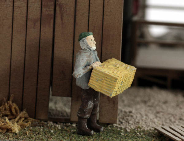 O-SCALE "EARL" FARM HAND WITH HAY BALE