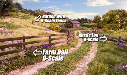 O-SCALE LOG FENCE - Add character to any scene with hand-painted and authentically weathered fences. Easily assemble fences on your layout by aligning the modular pieces. This kit features: One (1) Fence Section with Wide Gate (6" L x 1" H (15.2 cm x 2.54 cm)), One (1) Fence Section with Single Gate (6" L x 1" H (15.2cm x 2.54 cm)). SIx (6) Fence Sections (6" L x 1" H (15.2 cm x 2.54 cm)), All posts include mounting pin 0.276" (7mm) long. Ideal for large grassy areas.